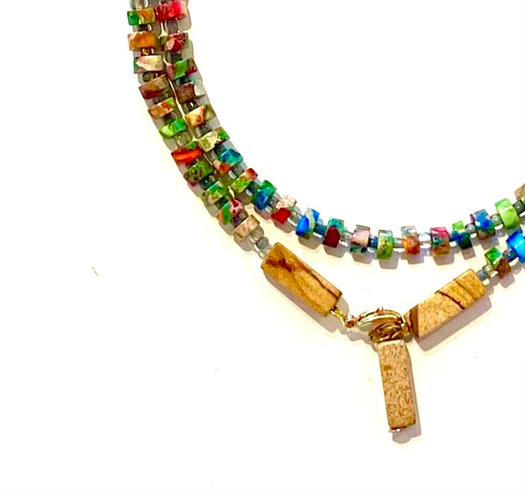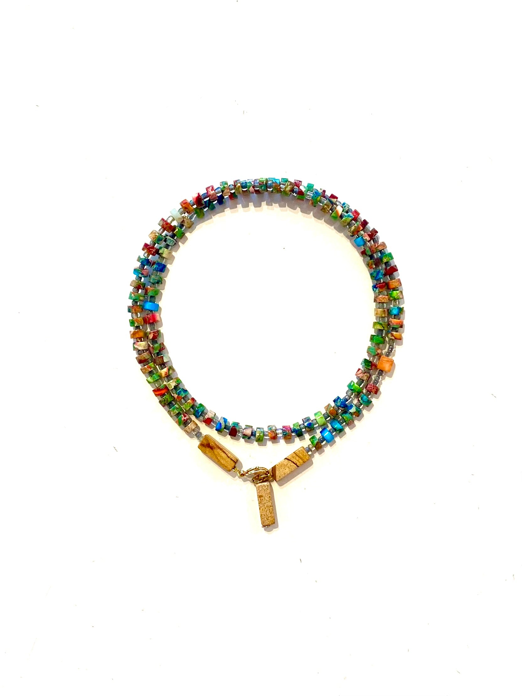 El Mala Kilim evoca la paciencia y la sabiduría de quienes tejen vida en cada nudo del telar. Sus cuentas multicolores representan los hilos que se entrecruzan para formar caminos, sueños y memorias, recordándonos que cada experiencia se enlaza con la siguiente para dar forma a nuestro propio tapiz interior.